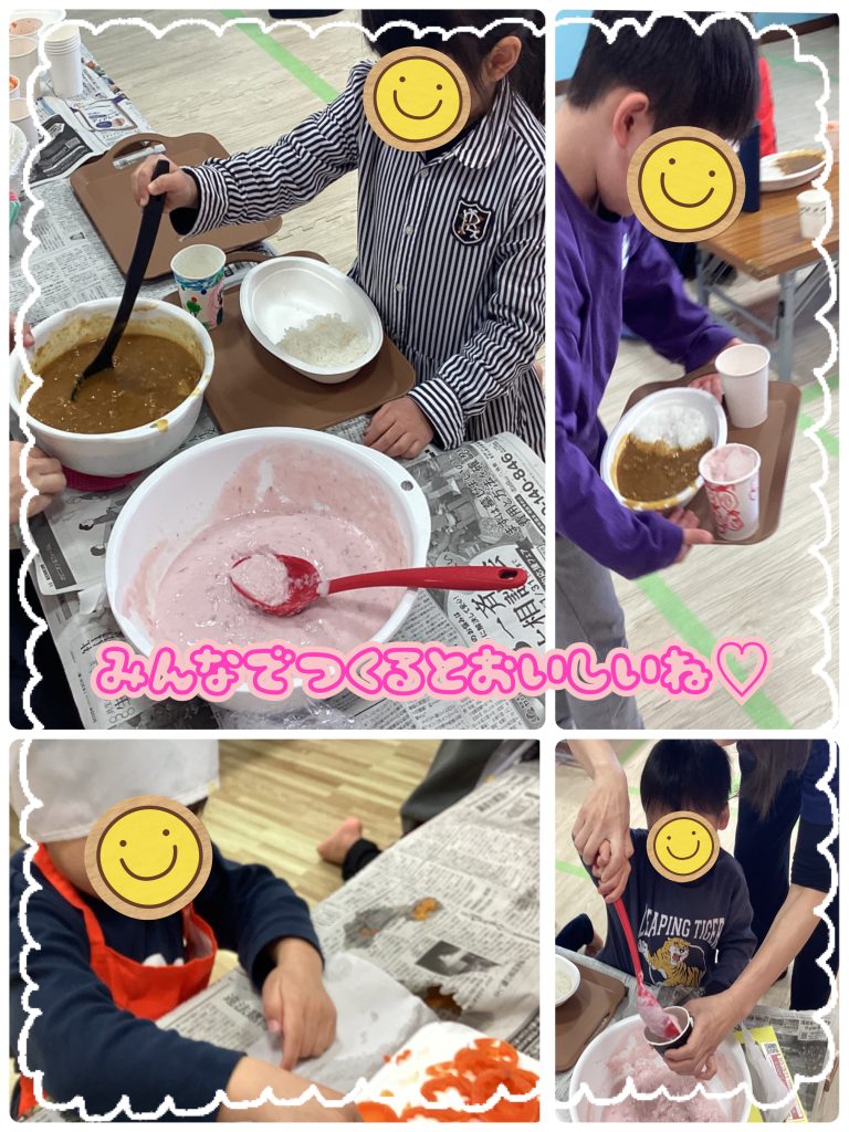 祝日イベントで、こども達の大好きなカレーライス🍛といちごフルーチェ🍓を作りました!