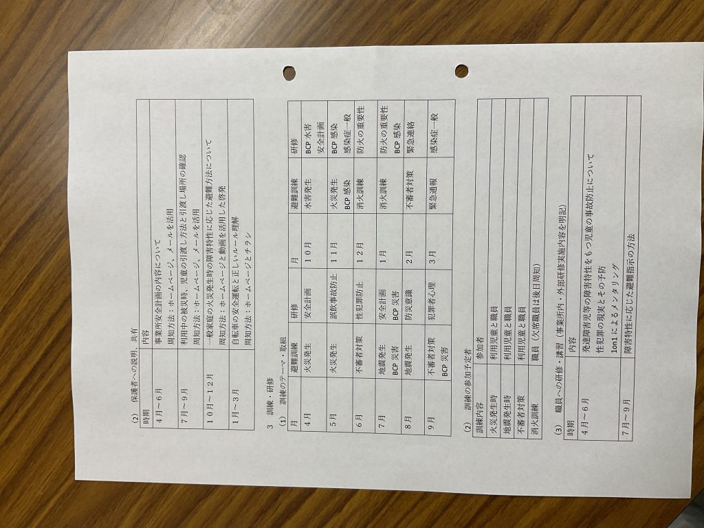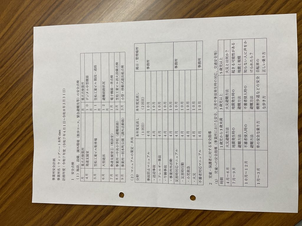「事業所安全計画」を策定し、職員一同で安全管理の徹底を図っております。